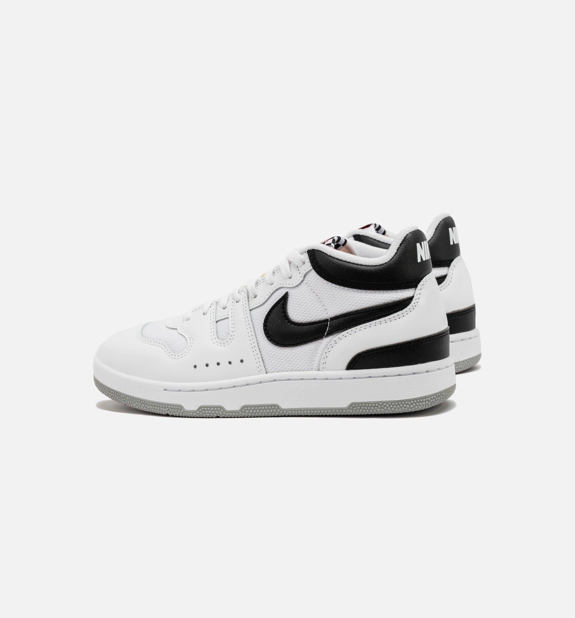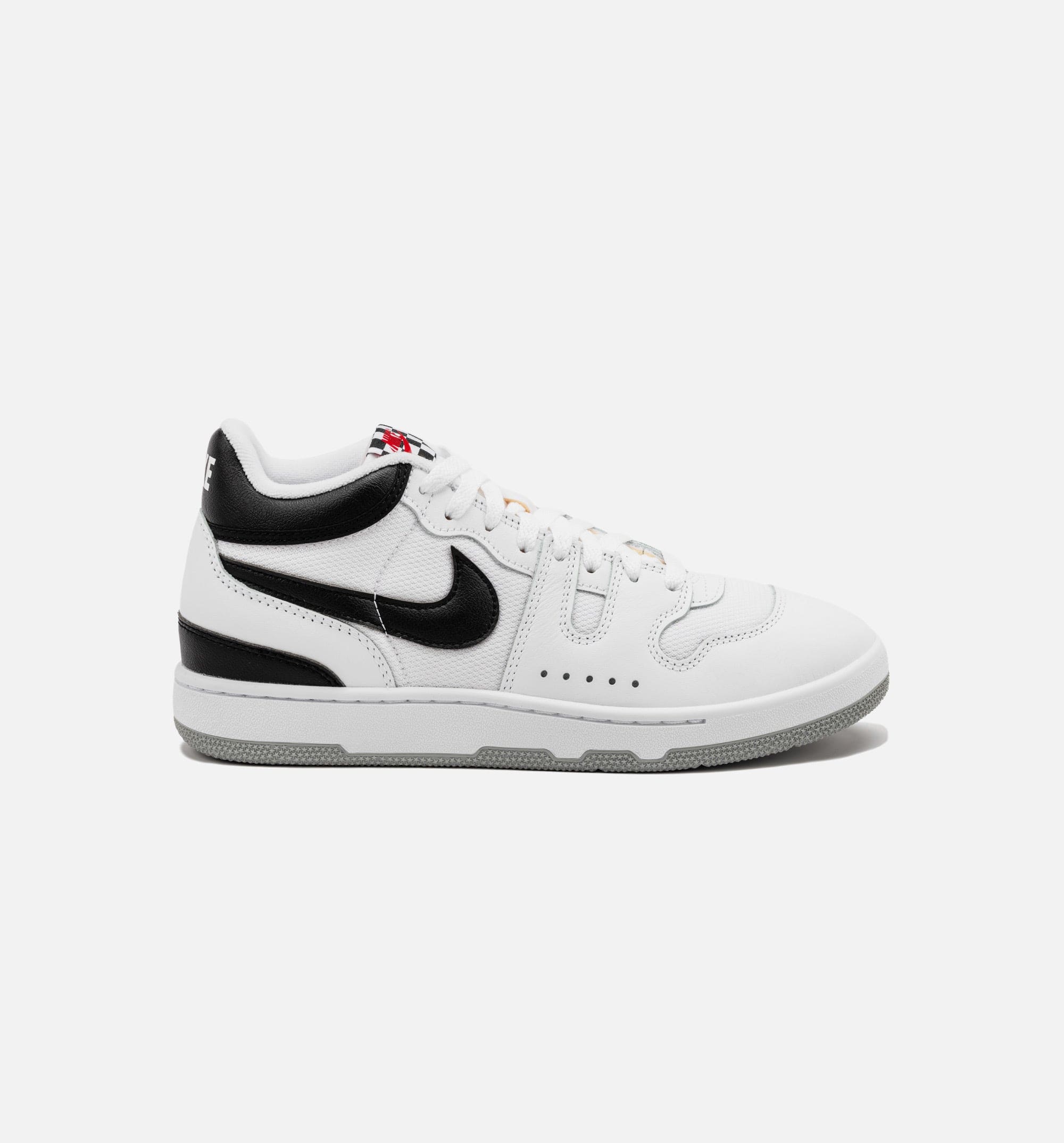 This offering of the Nlke Mac Attack comes constructed in a mix of mesh and leather materials with nylon tongues and signature checkered tongue labels. It features a White base with Black Swooshes, collars, and heels. Red tongue branding, White “Nlke” on the heels, inner lining, and midsole atop a Grey rubber outsole completes the design.